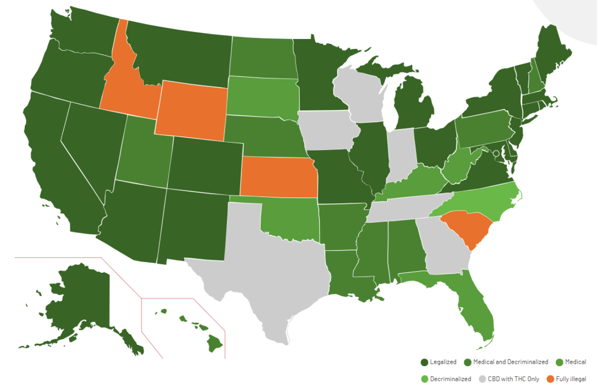 Cannabis-Rechtslage in den USA nach Bundesstaaten